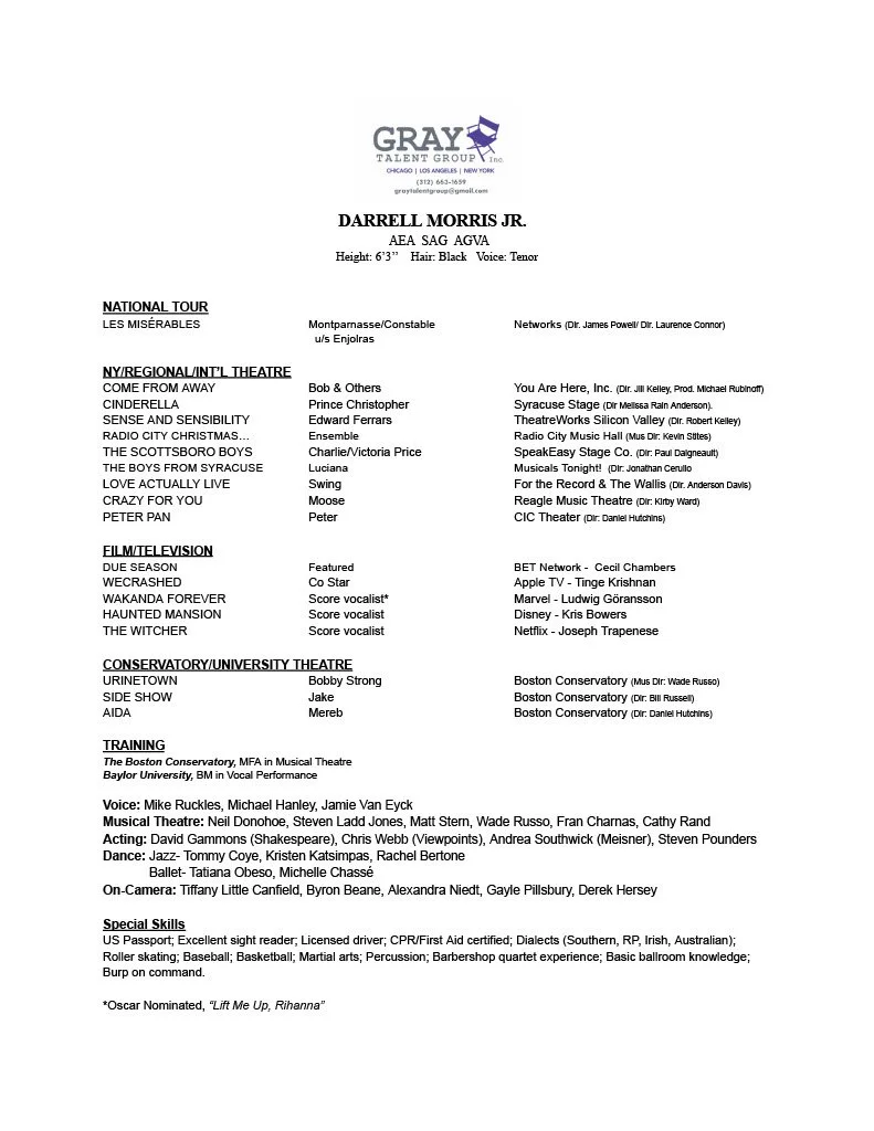 Darrell Morris, Jr. is a New York City based Actor/Singer who is currently on tour with Les Miserables!